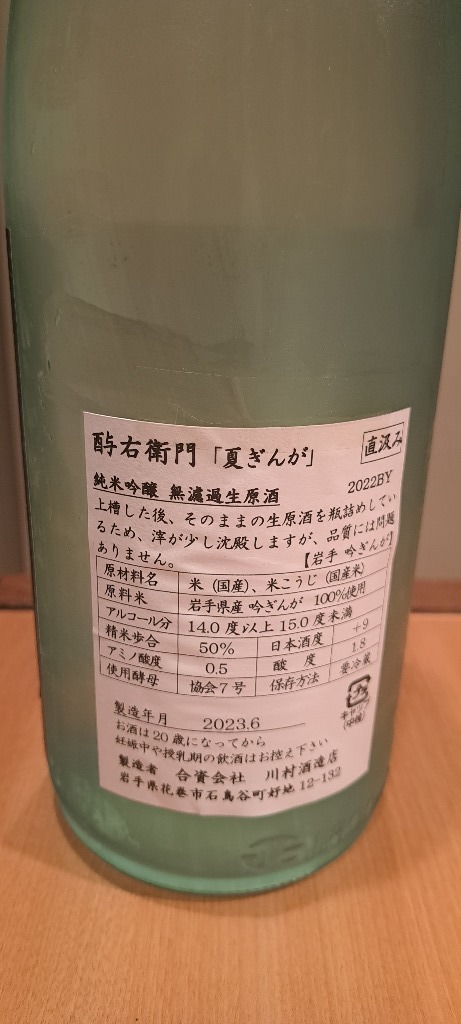 それを割り引いて聞いて頂きたいのですが、現時点で私が飲んだ夏酒の中で私の一番のおすすめになります。